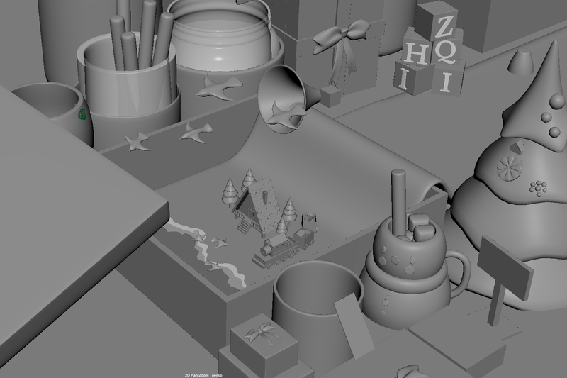 Next, I started refining my models to bring more detail and personality into the scene. I wanted to create a soft fabric that sits naturally inside the gift box, so I used nCloth simulation in Autodesk Maya to get a realistic drape.